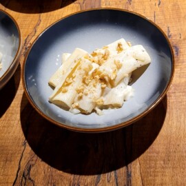 Elke gang wordt vergezeld door een bijpassend glas wijn of bier, zorgvuldig geselecteerd door Gastrovino Vaneker, dé delicatessenwinkel en wijnspecialist van winkelcentrum Het Stroink in Enschede.